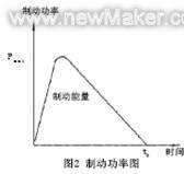对于载重车辆,特别是满载高速时,E值非常大。由于制动时间短,产生的热量与外界可视为无热交换。而热量在摩擦副上扩散速度有限,大量的热量集中在摩擦副接触表面,摩擦副表面瞬间功率可达到10MW/m2。制动功率图见图2。所以盲目增大制动输入力,会加速摩擦片磨损,减少制动器寿命。同时过大的推力增加了卡钳体的变形,容易造成疲劳失效。