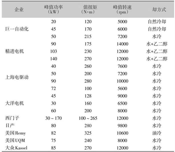 表2 国内外驱动电机企业的永磁同步电机参数比较