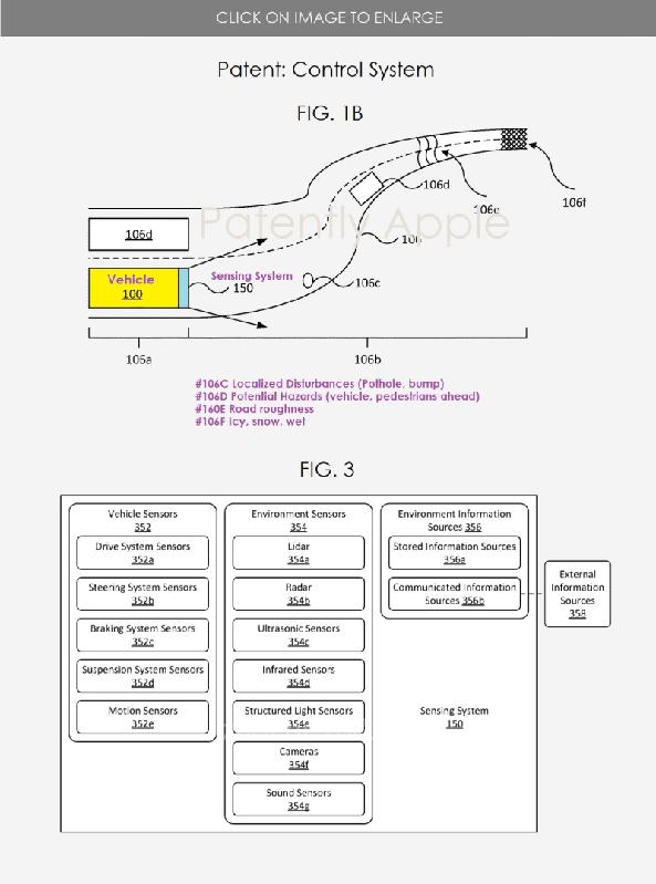 苹果专利图3所示,该感测系统#150监控车辆状况、监控车辆环境状况,和/或接收、存储或以其他方式获取关于车辆环境的状况信息。