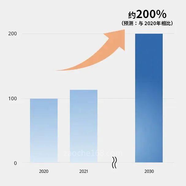 (2020 年的需求值用 100 表示。数据来源:TDK 的研究)